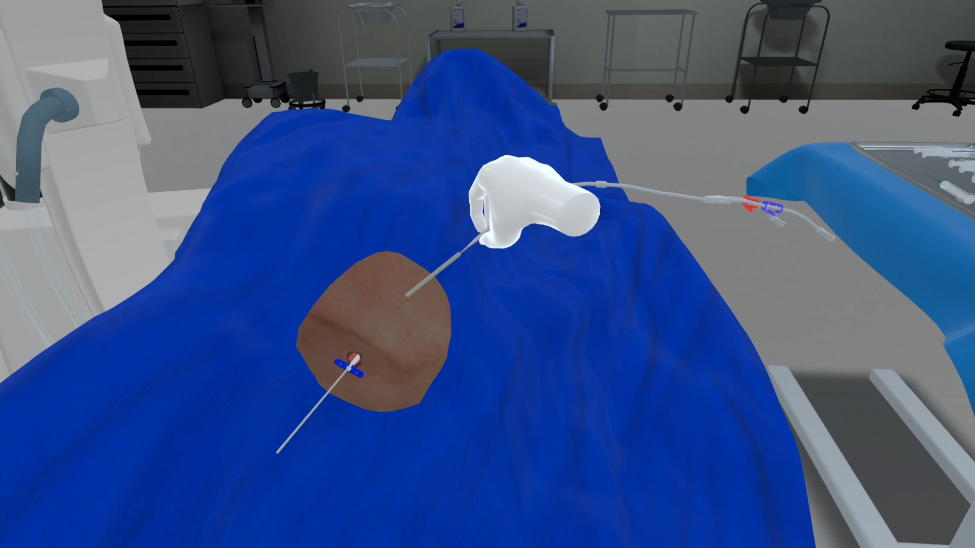 In this VR training, learners are provided with equipment like needles, tubes, lancets, blood collection devices, sample labeling material and gauze to bandage the puncture site to provide a realistic phlebotomy experience.