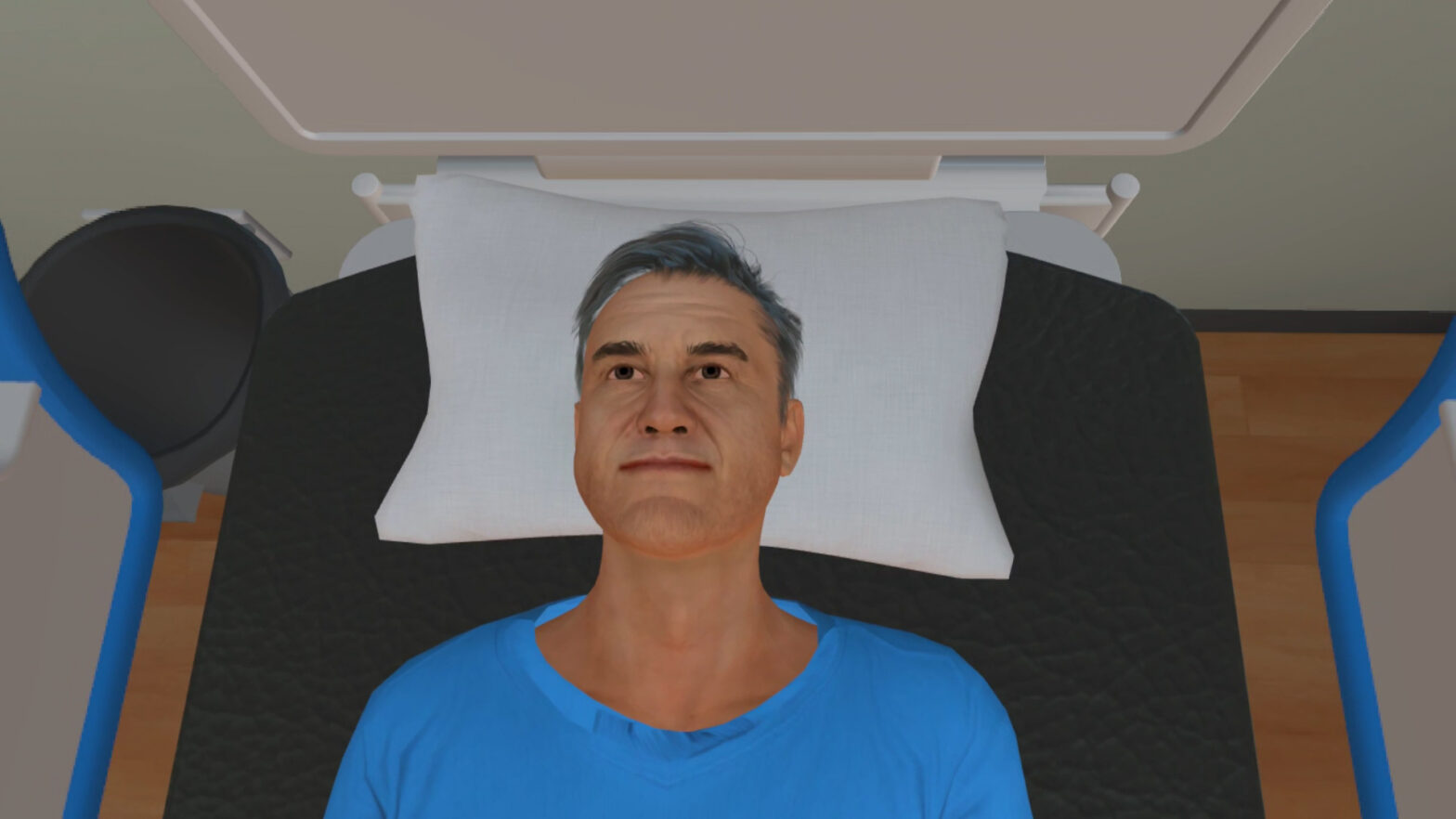 - Physics-based object interaction (bed, urinal, linens)