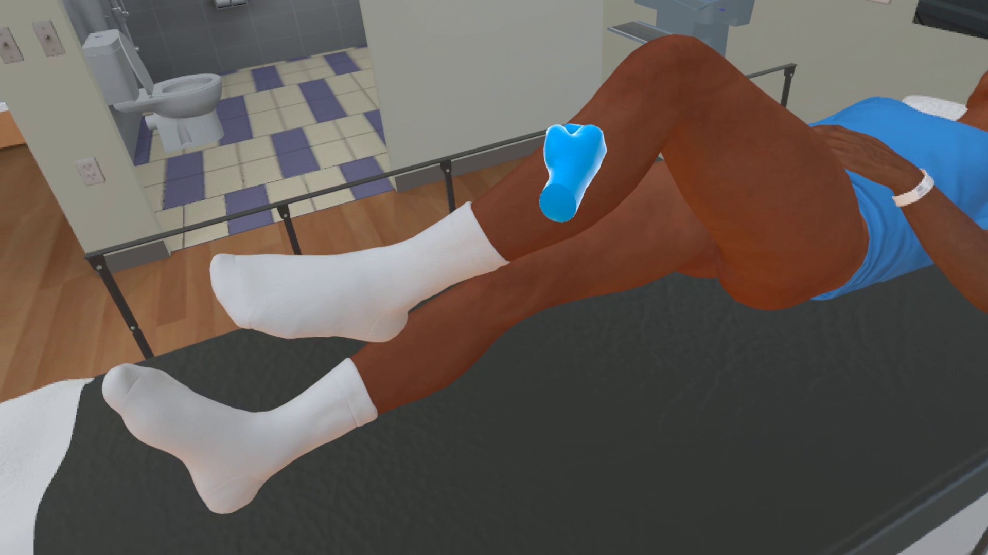 - Physics-based object interaction (bed, urinal, linens)