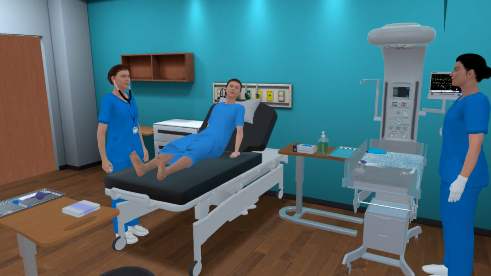 - Realistic delivery room and neonatal warmer environment
